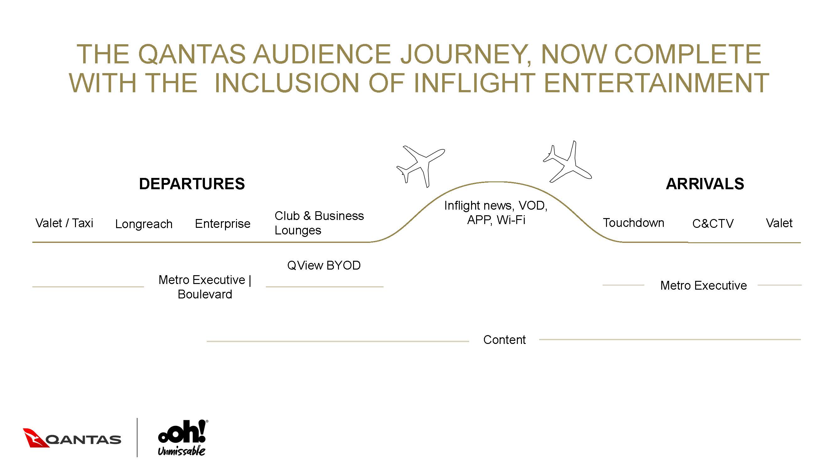 From 1 June 2018, oOh!’s advertising offering will extend beyond the airport to include all of Qantas’ international and domestic Inflight Entertainment. This includes seatback video-on-demand, the Qantas Entertainment App, onboard free Wi-Fi and inflight news bulletins.